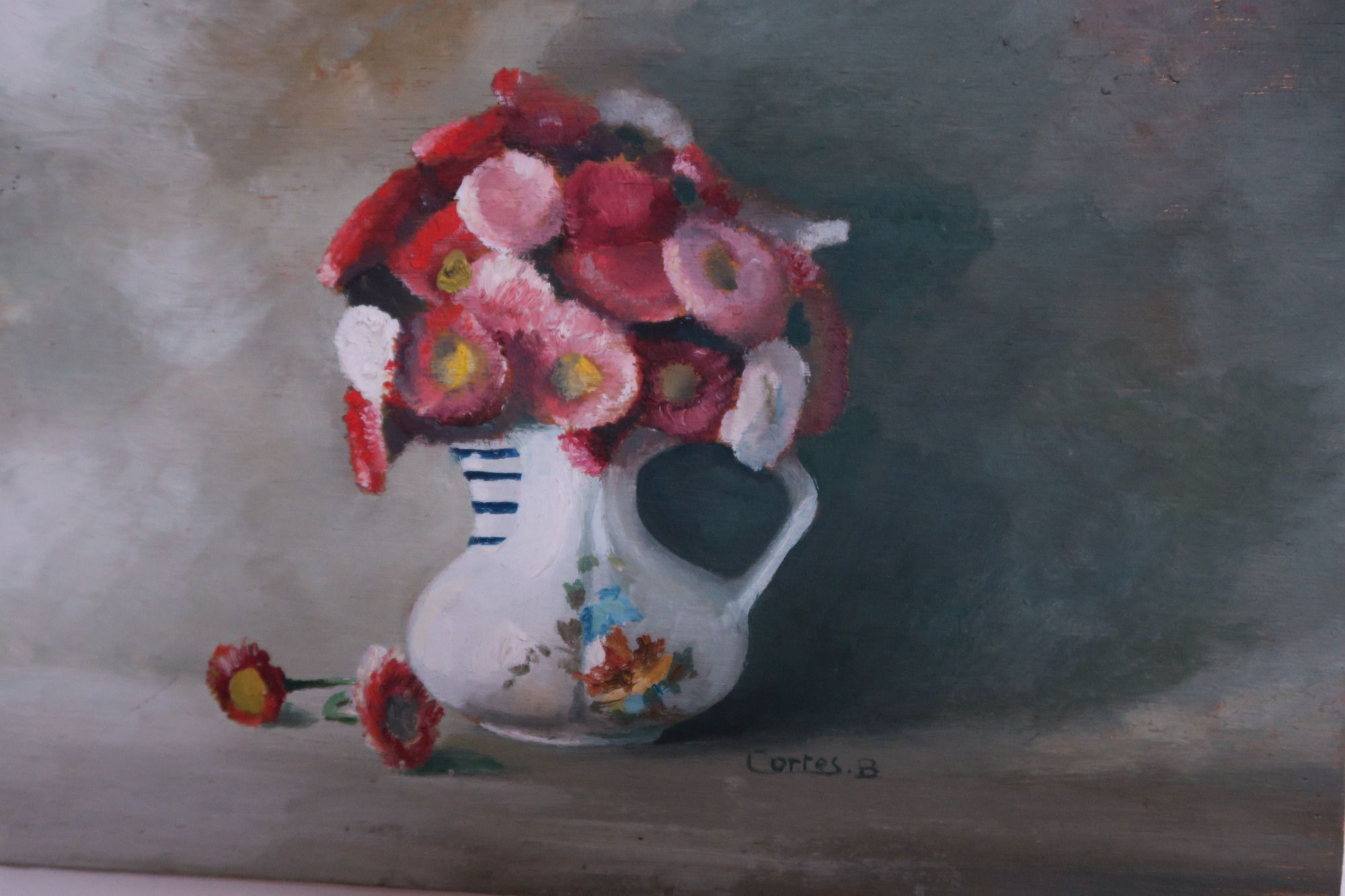 Les sujets de prédilection de Bernard Cortés sont ceux de la nature morte, peut-être aimait-il la compagnie silencieuse de ces objets inanimés ou celle des fleurs ?